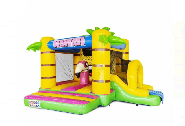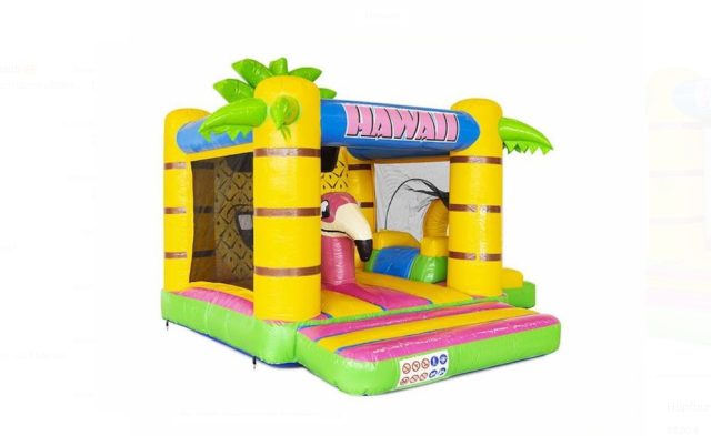 Unsere kompakte Hawaii-Hüpfburg mit Rutsche und Spielobjekt bringt tropisches Urlaubsfeeling direkt ins Kinderfest: bunte Flamingos, Palmenmotive und eine große Rutsche laden zum Springen, Toben und Spielen ein. Perfekt für Kindergeburtstage, Sommerfeste oder jeden Anlass, bei dem sonniger Spaß garantiert ist!